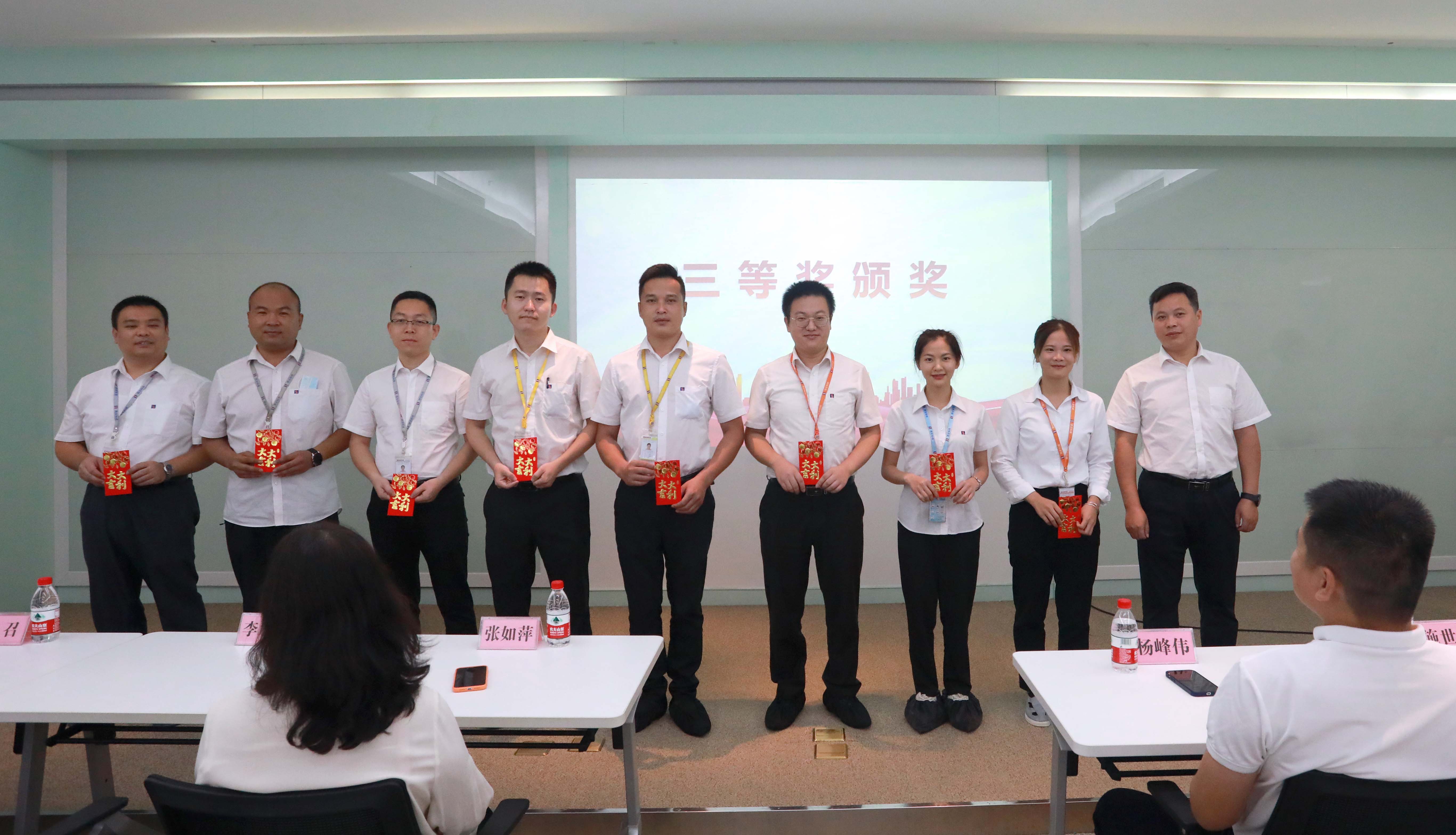 9月2日上午,颁奖仪式在三楼培训室举行。党支部书记/行政管理中心总监张如萍、工会主席/采购中心总监杨峰伟、党支部副书记/多层板事业部副总经理李加余、党支部群工委员施世坤、党支部组织委员张召出席仪式并为获奖选手颁发奖金。