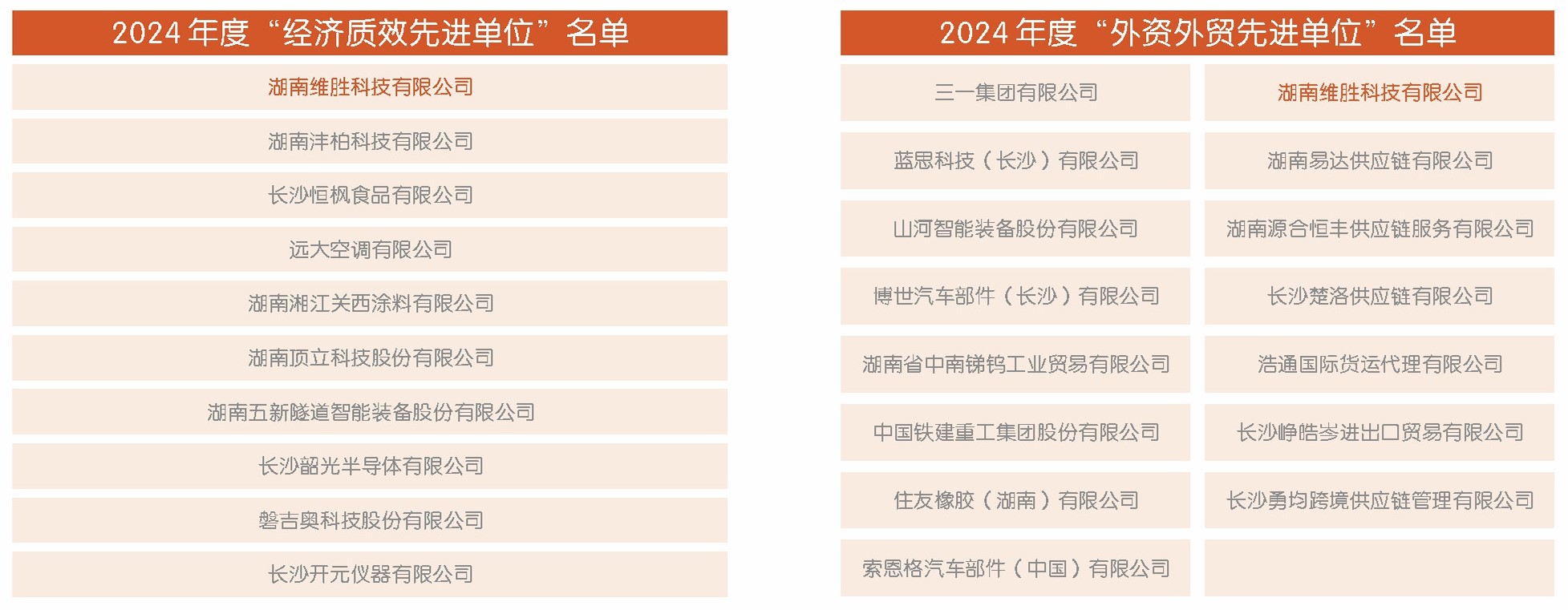 2月19日上午,长沙经开区召开2025年高质量发展大会,现场重磅发布2024年度“光荣榜”,对年度表现突出、贡献卓越的企业单位予以表彰。维胜科技凭借领先的技术实力和勇于突破的探索精神,荣耀登榜,斩获“经济质效先进单位”与“外资外贸先进单位”两项殊荣。